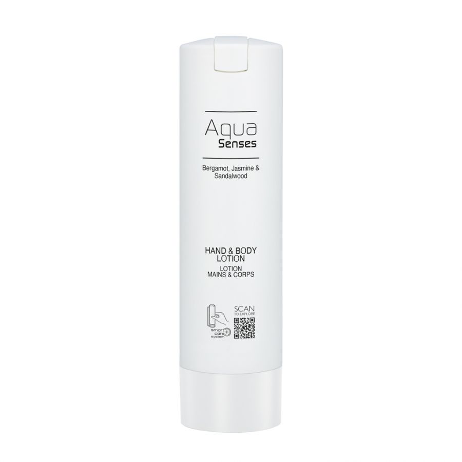The pampering hand and body lotion contains valuable active ingredients and is especially suitable for daily beauty routine. Provide your skin with moisture and rich care for soft, supple skin. Aqua Senses - take a sensuous aquatic dip The Aqua Senses cosmetics line pampers the senses, cares for the skin and provides soothing calm and serenity. With an elegant fragrance blend of vitalising fresh bergamot, mood-lifting jasmine and sandalwood that gives clarity and serenity. This is what distinguishes our care products: - Exquisite scent - Easy to distinguish thanks to different coloured fillings - Recyclable packaging. The collection offers a wide range of products for a well-being programme from care products to accessories.