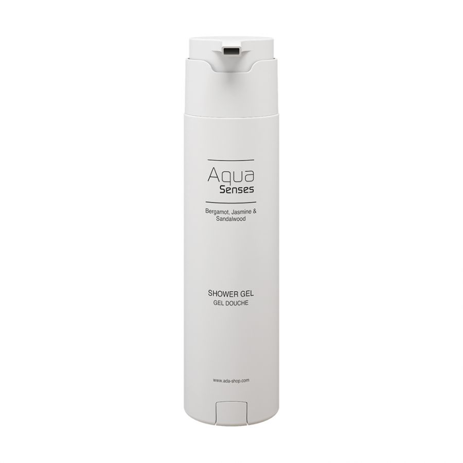 High-quality shower gel in a 100% hygienic, closed dispenser, is suitable for all skin and hair types. Thanks to bergamot, jasmin and sandalwood extracts the body is pampered by a rich but delicate care texture. Discover the variety of our hair and body shampoos and be inspired by the high-quality products and collections. The Aqua Senses cosmetics line pampers the senses, cares for the skin and provides soothing calm and serenity. With an elegant fragrance blend of vitalising fresh bergamot, mood-lifting jasmine and sandalwood that gives clarity and serenity. This is what distinguishes our care products: exquisite scent, recyclable packaging.